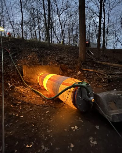 During one week in November 2023, PMC completed UV Culvert Lining for three different municipalities/road commissions. The work consisted of a110’ run of 48” for the Arenac County Road Commission, a 105’ run of 36” for Washtenaw County Water Resources Commissioner located in Scio Township, and a 73’ run of 48” for the Wexford County Road Commission. Each project presented unique challenges from large amounts of water needing to be bypassed to a 45’ drop down the side of a hill to get then liner down to the mouth of the culvert for installation. These challenges were met head on by the Pipeline Management field teams and each on the projects were completed with great success.